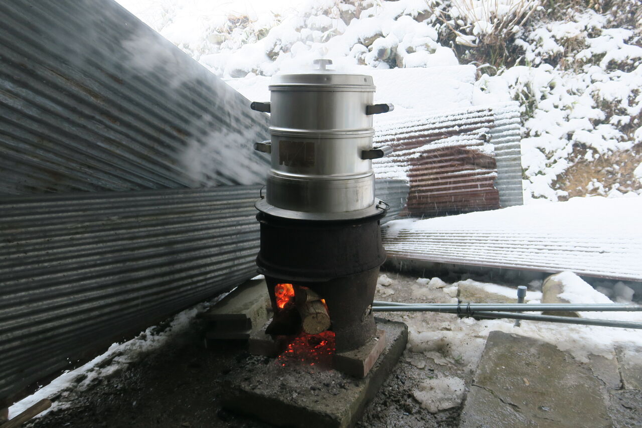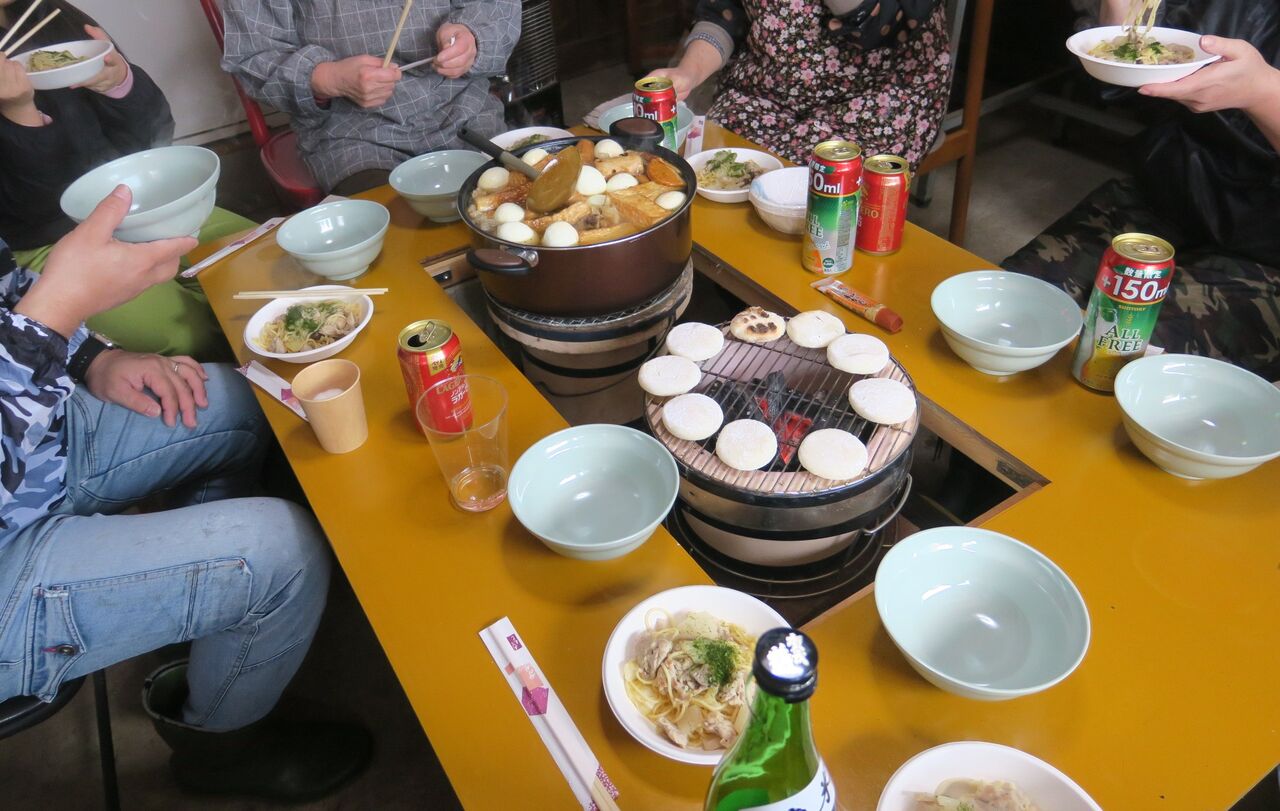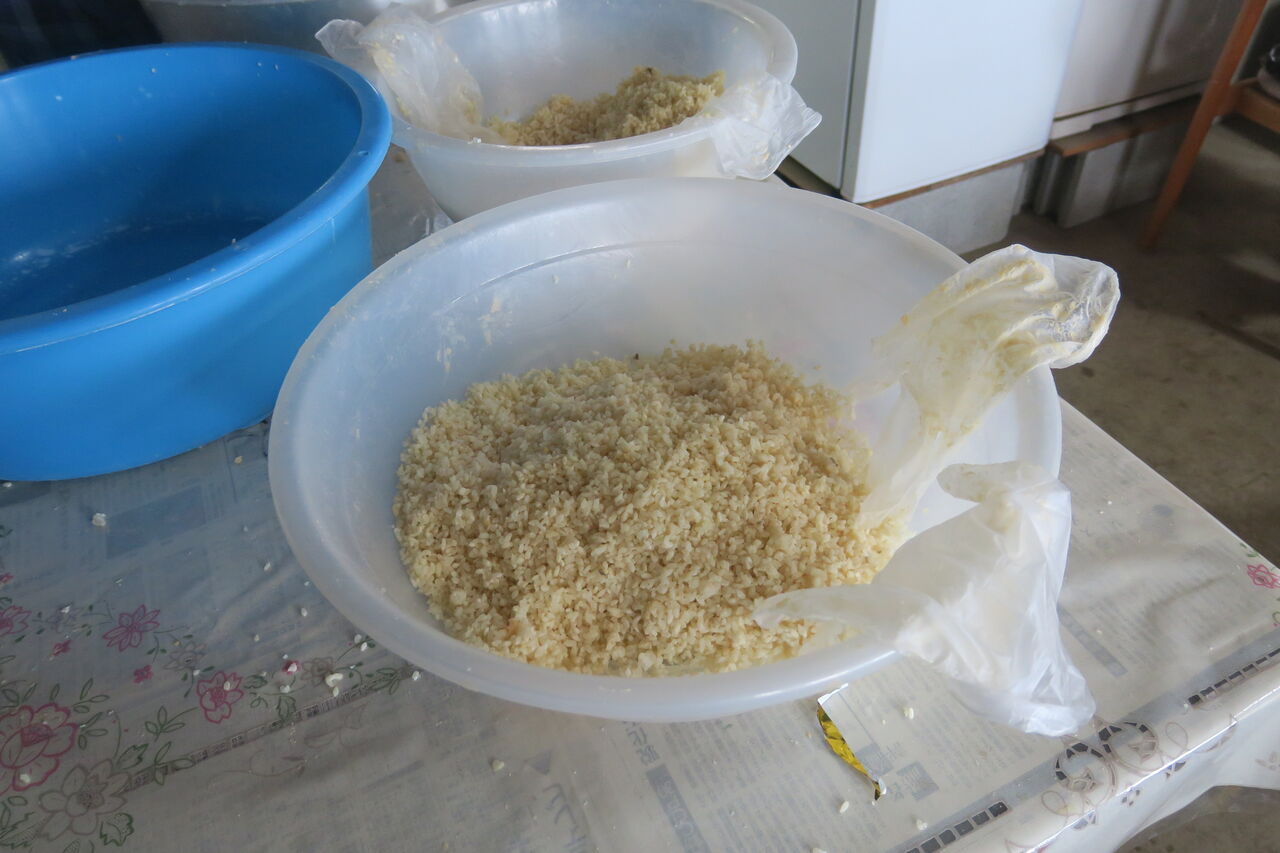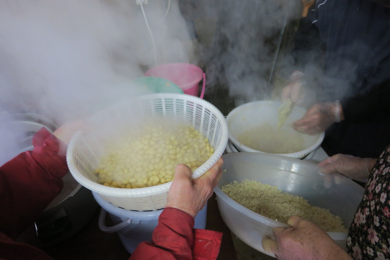 2026年02月15日 明るい農村 味噌造り 蒸した大豆をミールにかけて・・ 麹菌をたっぷり混ぜて 1年ほど熟成させる。 仕込みが終わって、世間話に花が咲く。 みんな、てまえ味噌みたいなメンバーだしね。