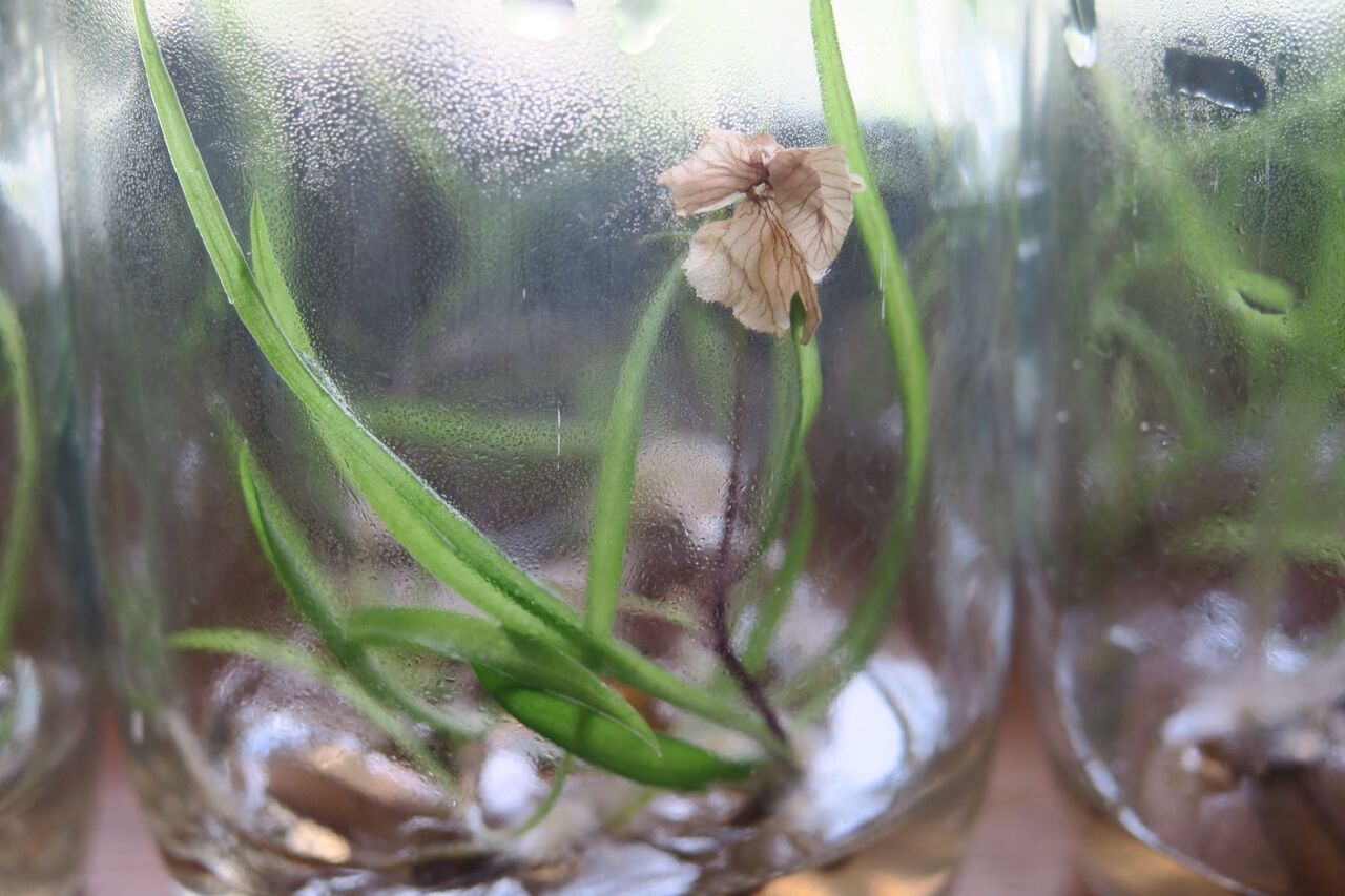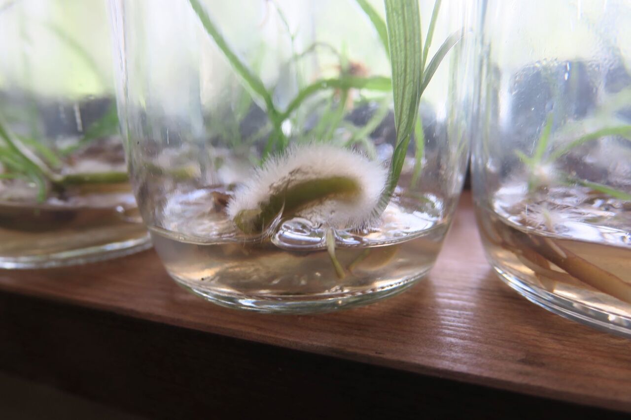 うちのウチョウランの苗ポットが、カラカラに渇き切っていて、あわてて給水しました。