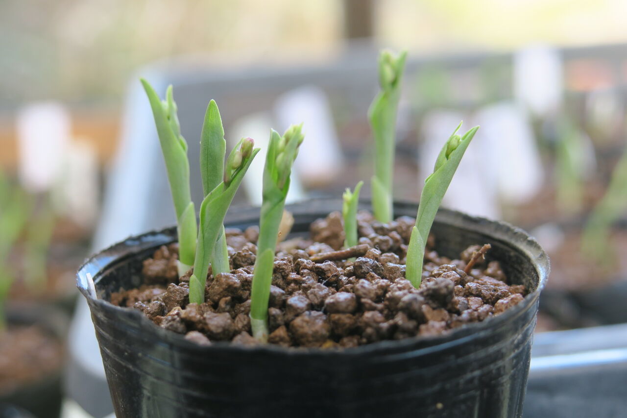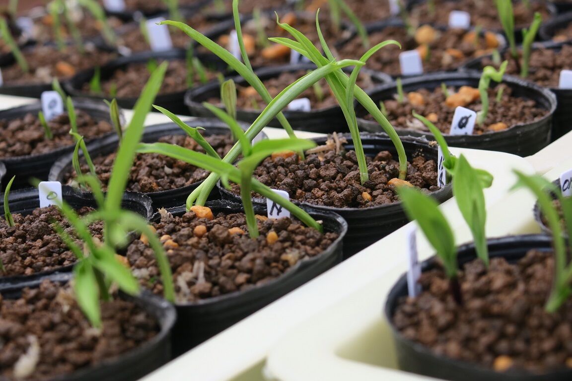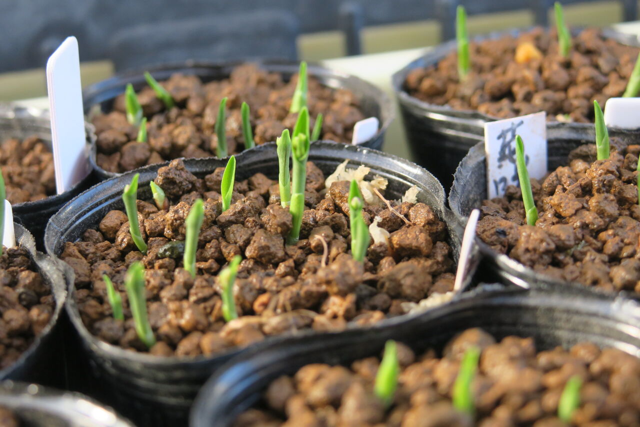 やっと芽が見えてきたものとか、芽出しが不ぞろい状態。