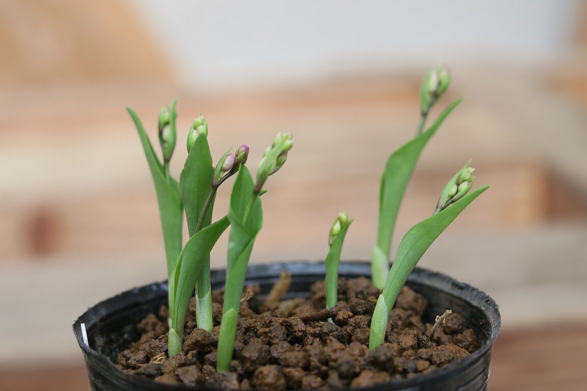暖かいところで球根を保管してたので、一足早く咲いた。
