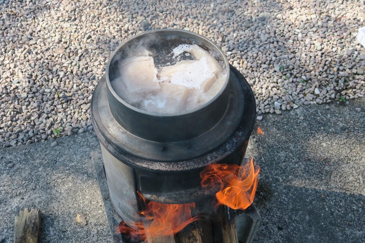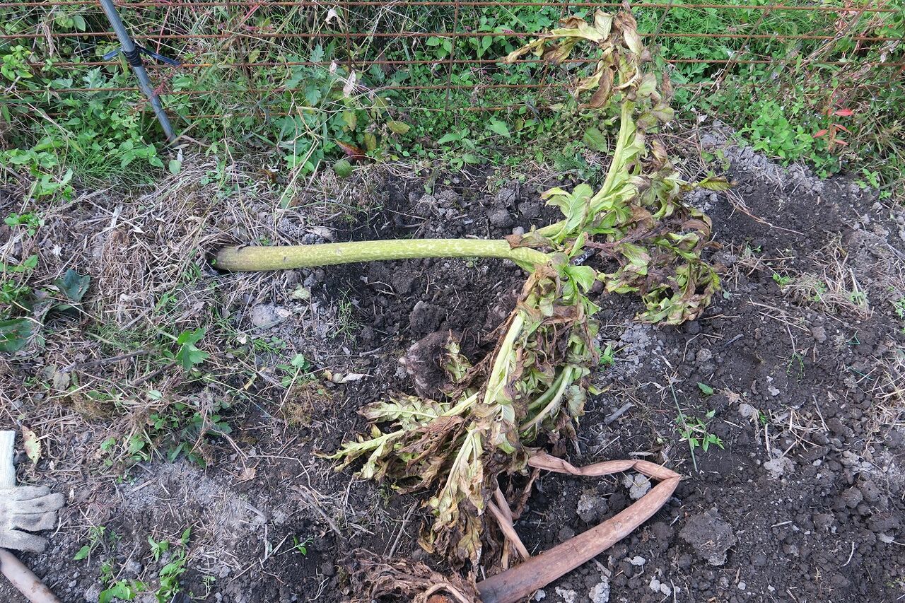 2020年10月31日 明るい農村 コンニャク作り コンニャク畑コンニャクの茎が倒れた。いよいよ収穫。コンニャクイモなかなかの上出来。かまどを準備コンニャクを煮詰める。はじめてのコンニャクづくりにチャレンジ。近くの名人のアドバイスとか、ネットで調べたりして、なんとか出来上がり。ちょびっと形が悪いけど、ここはご愛嬌ということに・・・。何事も経験の積み重ねだからね。見かけによらず、歯ごたえとか味とかは抜群だったね。手作りの味噌と合わせて、ごちそうさんでした。
