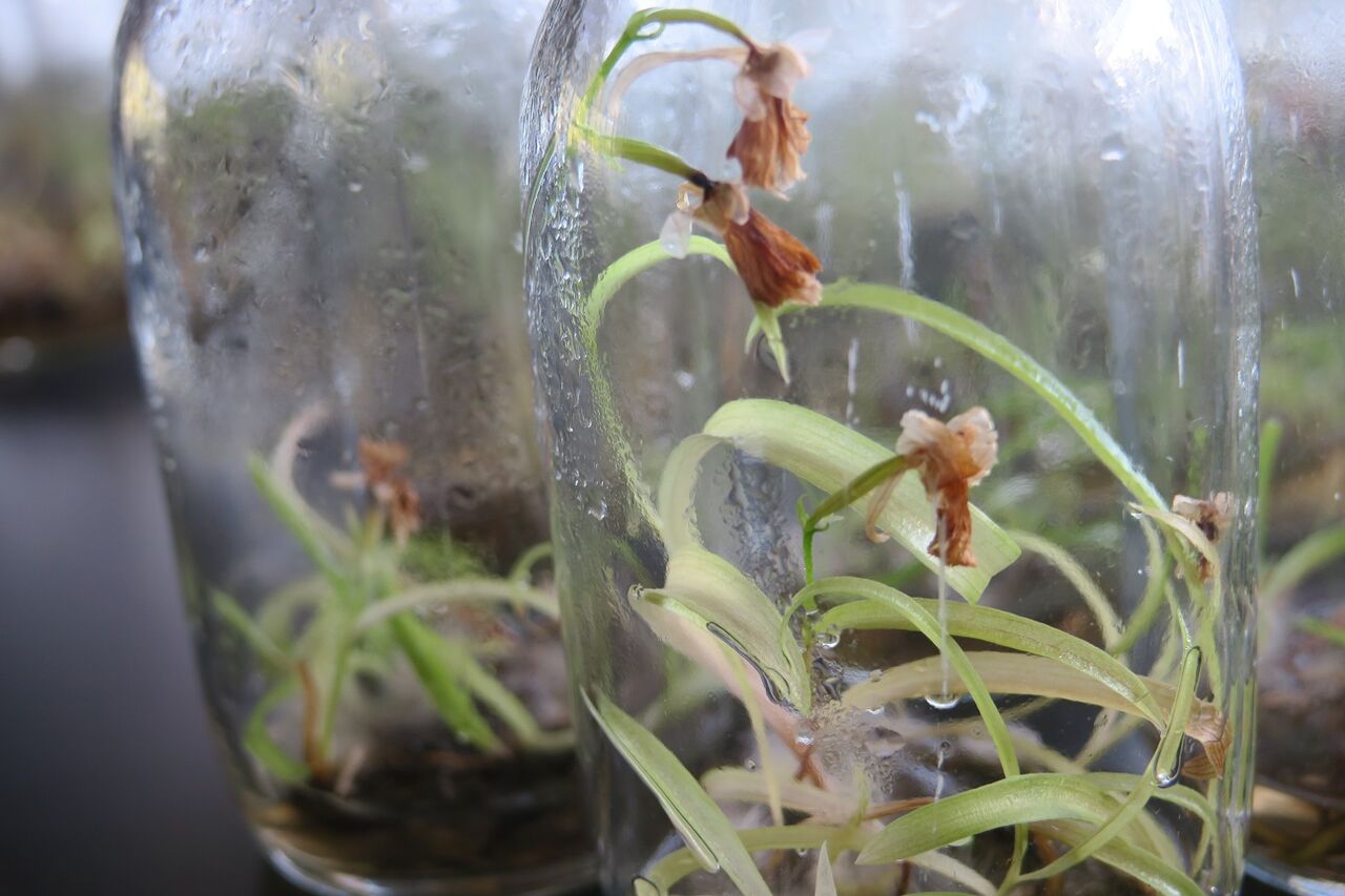 2020年10月27日 無菌培養 移植培地作り 12月ごろから、1年球の移植開始。今から培地を準備しておかないと間に合わなくなる。オートクレーブで120度まで加熱して出来上がり。H培地に微量要素をおまじないに添加している。いろいろ試行錯誤した培地だけど、単純な組成で充分育つ。今年6月の開花発芽2年目で、生育のいいものは培養ビンの中で花が咲く。ウチョウランの黄葉がはじまっている。もうちょっとしたら忙しくなるな~。