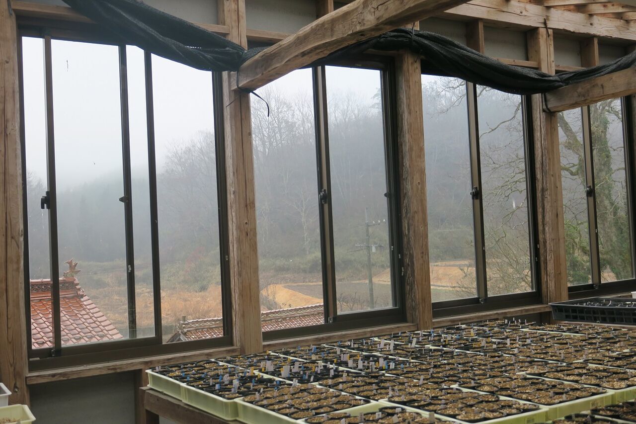 たっぷり陽に当て、夏は寒冷紗を張っている。