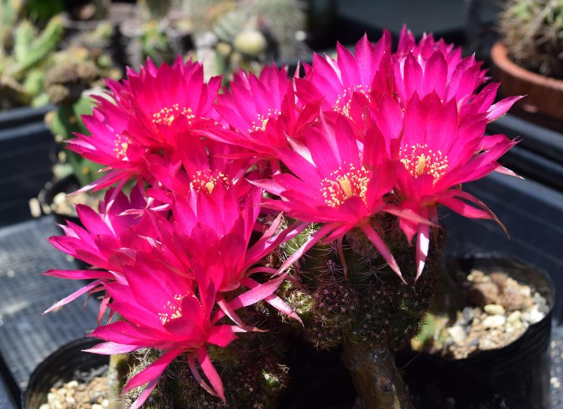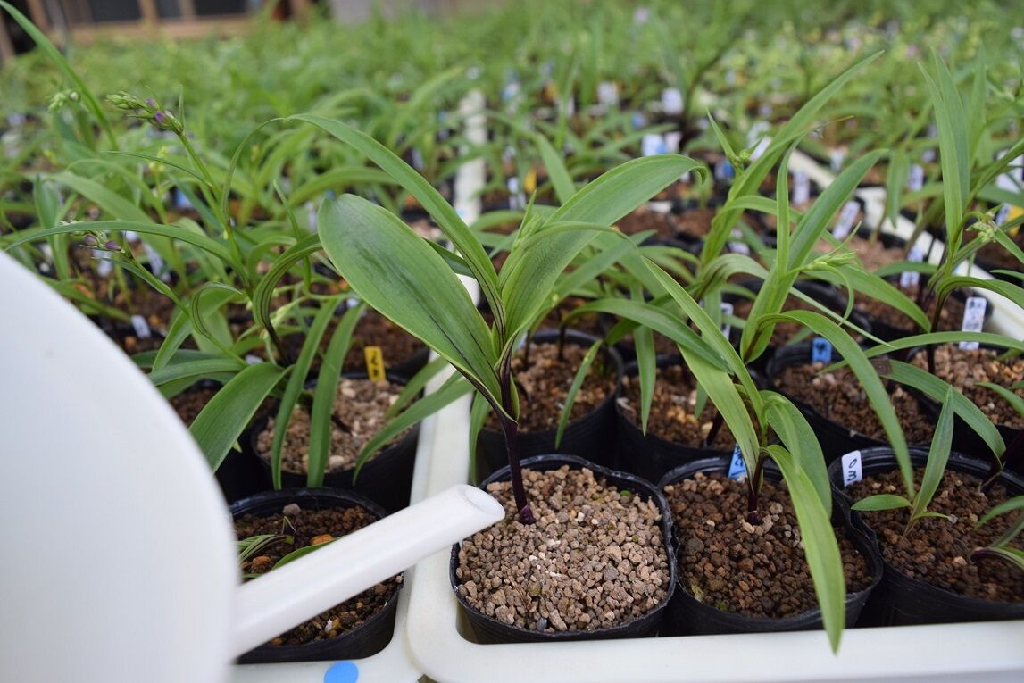 水やりは表土の乾き具合で、ポットごとに判断している。