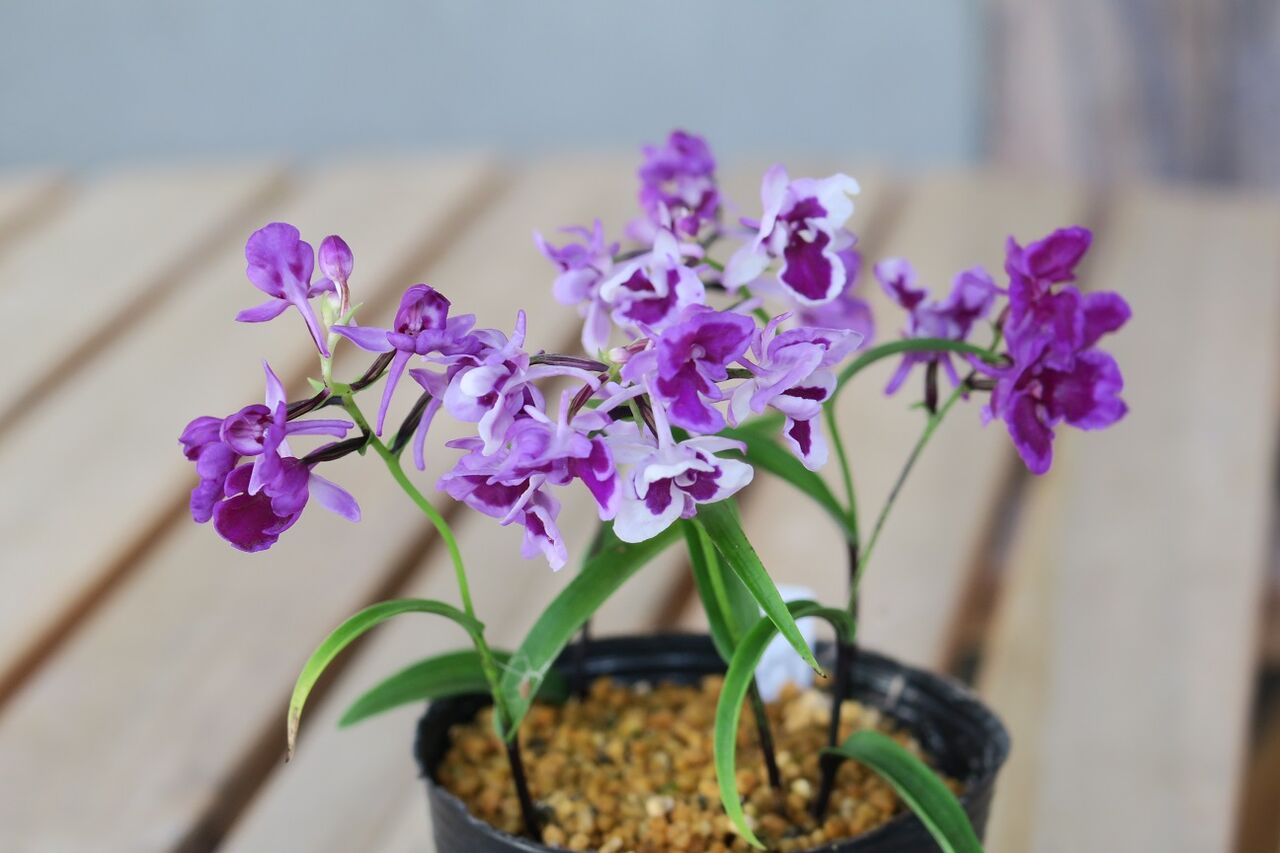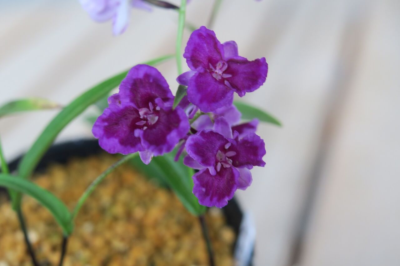2022年06月30日 ウチョウラン 続:3蝶交配の咲分け 以下の写真は、同系交配咲分けではないけど、かわいい花だよ。咲分けの血はあるので、交配親にできそう。花数が多くなると、いいかも・・。こやつは、あっち向いてホイ こっち向いてホイ↑ の写真のA面↑ の花のB面