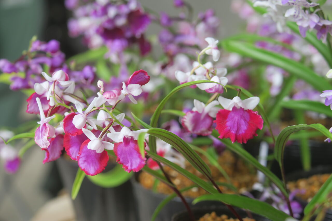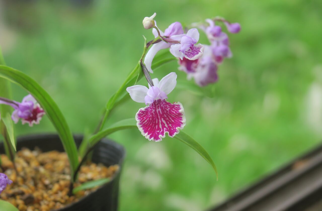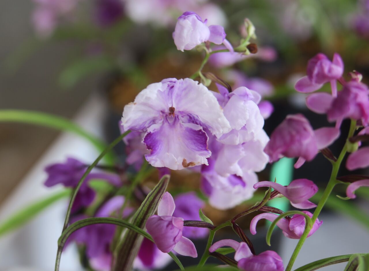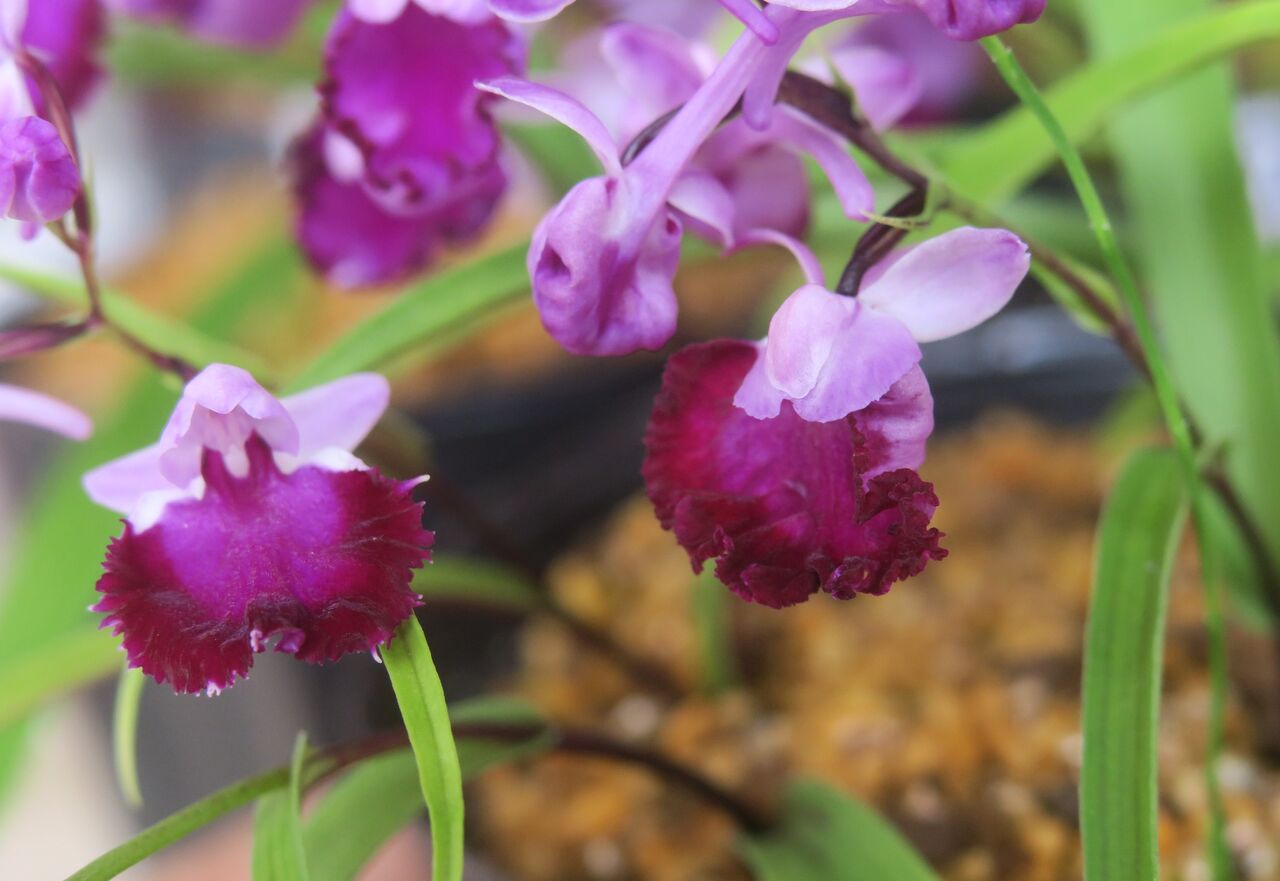 2023年06月25日 ウチョウラン 虹ぼかし ♀ 赤一虹ぼかし × ♂ 濃色大兜(朱花兜 × 紅一3蝶) ♀ 赤一虹ぼかしに兜の血がないから、兜の出現はあまり期待していなかった。もうちょっとメリハリがあってもいいようなんだけど・・・。こんなのも咲いたけど、まだ力がないからぱっと開かないな。花をちぎってこじ開けた。紅一 赤一 朱花 虹ぼかしの血が織り混ざっているから、交配親にしても良さそう。花粉を採取このタイプがほんの数本咲いた。どんな花と交配したらいいのか・・?