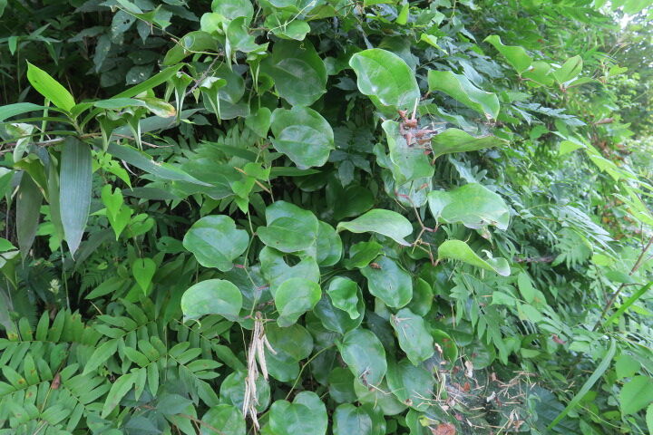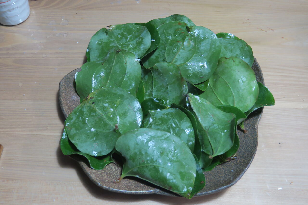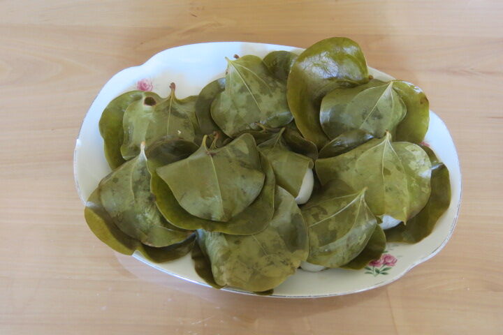 2023年08月04日 明るい農村 田舎のスィーツ 焦げるような暑さだけど、木陰は涼しい。道ばたのサルトリイバラかしわ餅作るから、葉をとってきてちょうだい。蒸す前出来上がりとなりのトトロのような味がする。