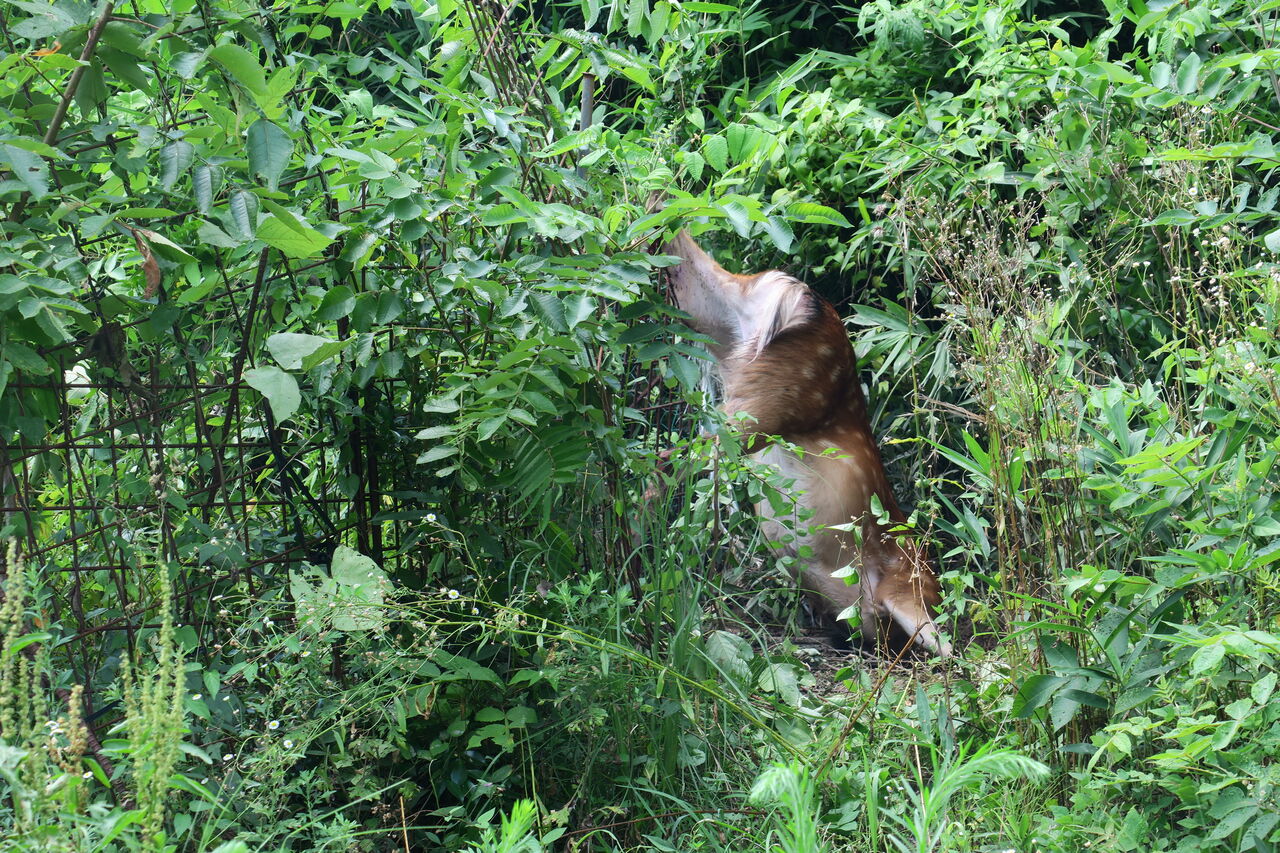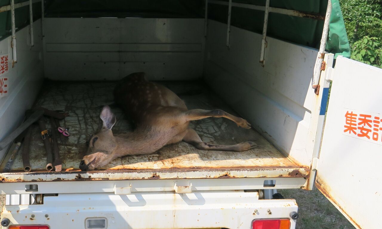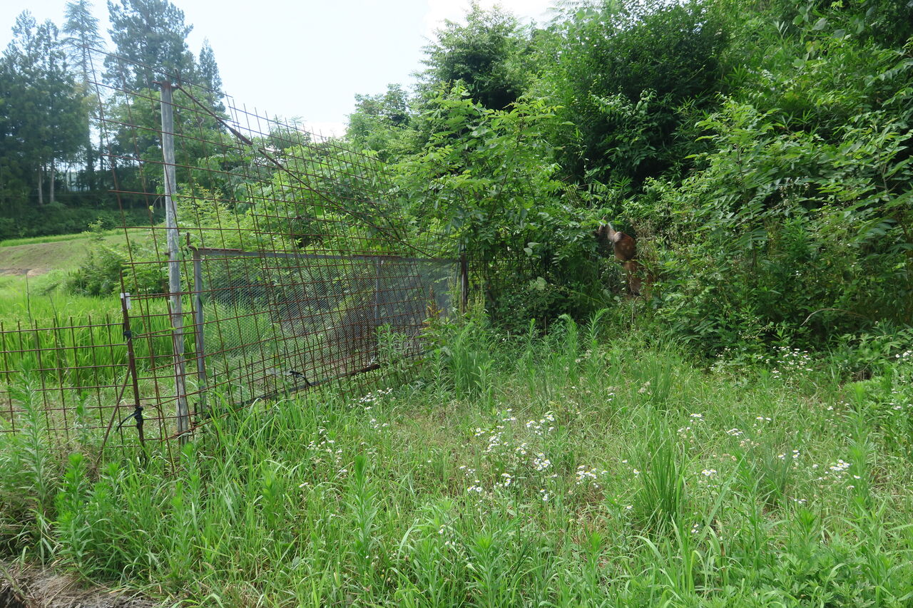 2025年08月06日 明るい農村 不運な鹿 写真の中ほどに注目 画像アップ なんじゃこりゃ~・・ さらに画像アップ 鹿がもがいている。 柵を跳び越えようとしたが、後ろ足が柵に引っかかって、 身動きできなくなってる。 逃がしてやることも、棒で叩いて昇天させることもできない。 かなり弱ってるみたいだから、 このままの状態にしておくほかなさそう。 アバウト2時間後の息絶えた鹿 業者さんに依頼して市の焼却場で処分してもらうことにした。 ああ・・、やれやれ・・。