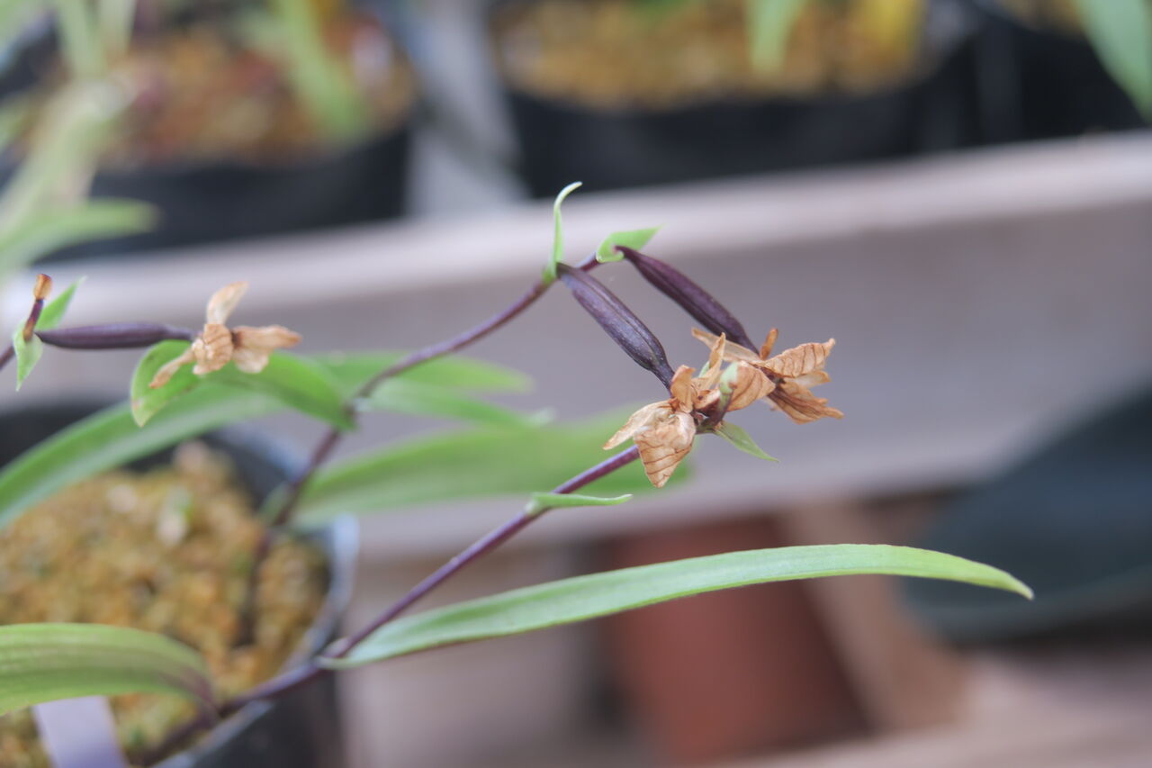 2025年08月30日 ウチョウラン 華美系の交配 交配親のポット 播種は9月下旬くらいかな・・? 播種培地の準備もしたいところだけど、 暑い日が続くと、な~んもする気がしなくなる。 華美系咲き分け ♂花粉親の華美系のカラス葉 ♂カラス葉の3蝶 ねらいはカラス葉の3蝶咲き分け