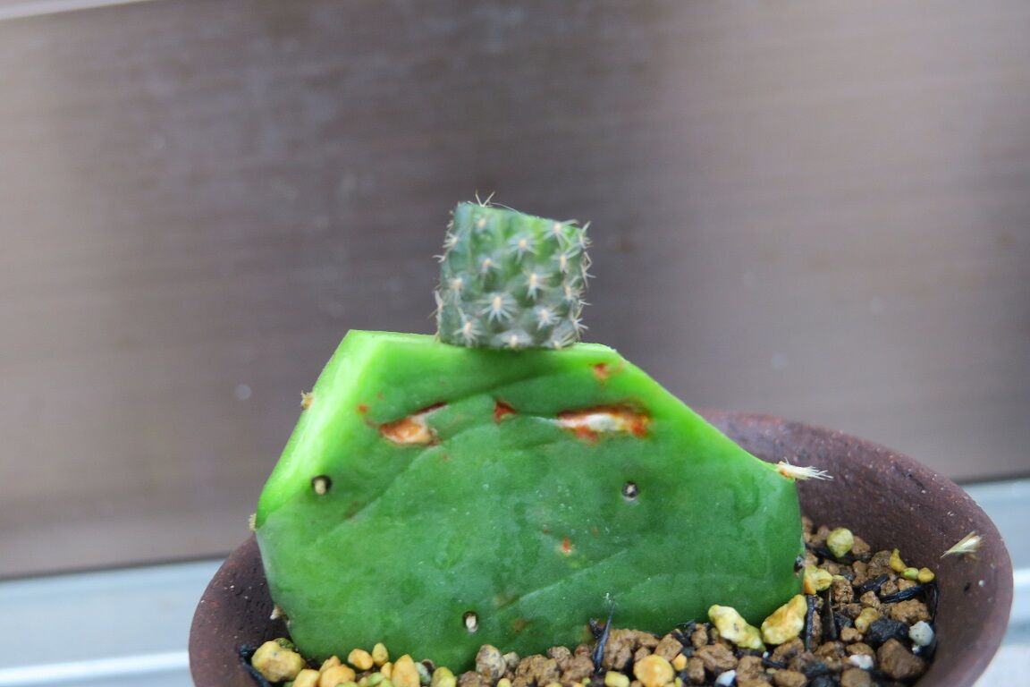 小指の先っちょくらいの子を接いで1年経過の新花鏡丸(ロビビア交配種)